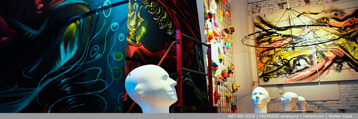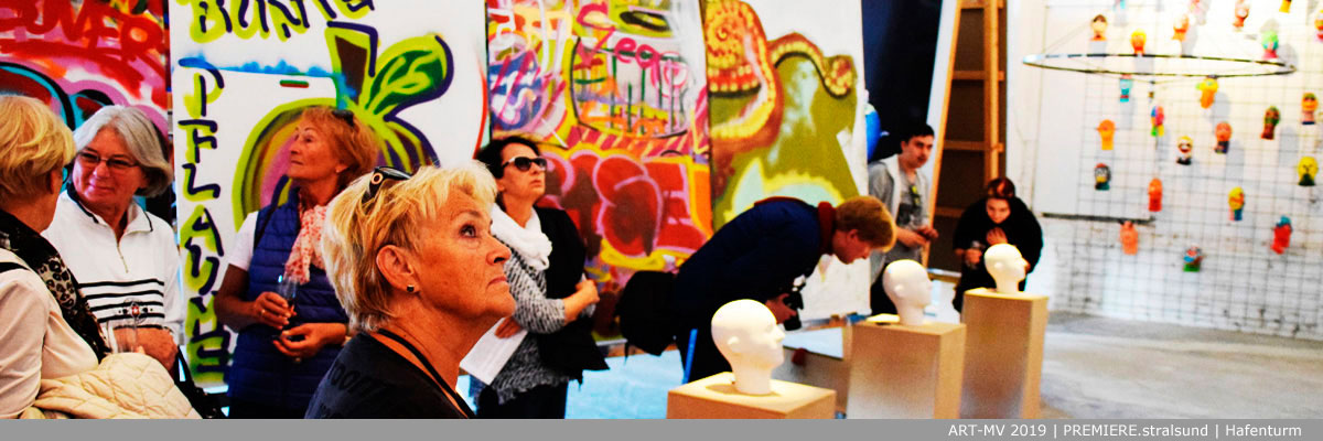 Die ART-MV feiert im Hafenturm Stralsund ihre Premiere. Sie hat sich zum Ziel gesetzt, die Kunst in MV sichtbarer zu machen, ihre Akteure zu unterstützen und den Kulturtourismus zu bereichern. Unser Auftakt steht im Zeichen von Urban Art, pflegt Verbindungen in die Szene nach Greifswald und inspiriert die Jugend im Offenen Atelier. Gezeigt werden Installationen, Wasserspiele, Objekte, Fotografien, Urban Art (Profis und Jugend) und Virtual Reality. |